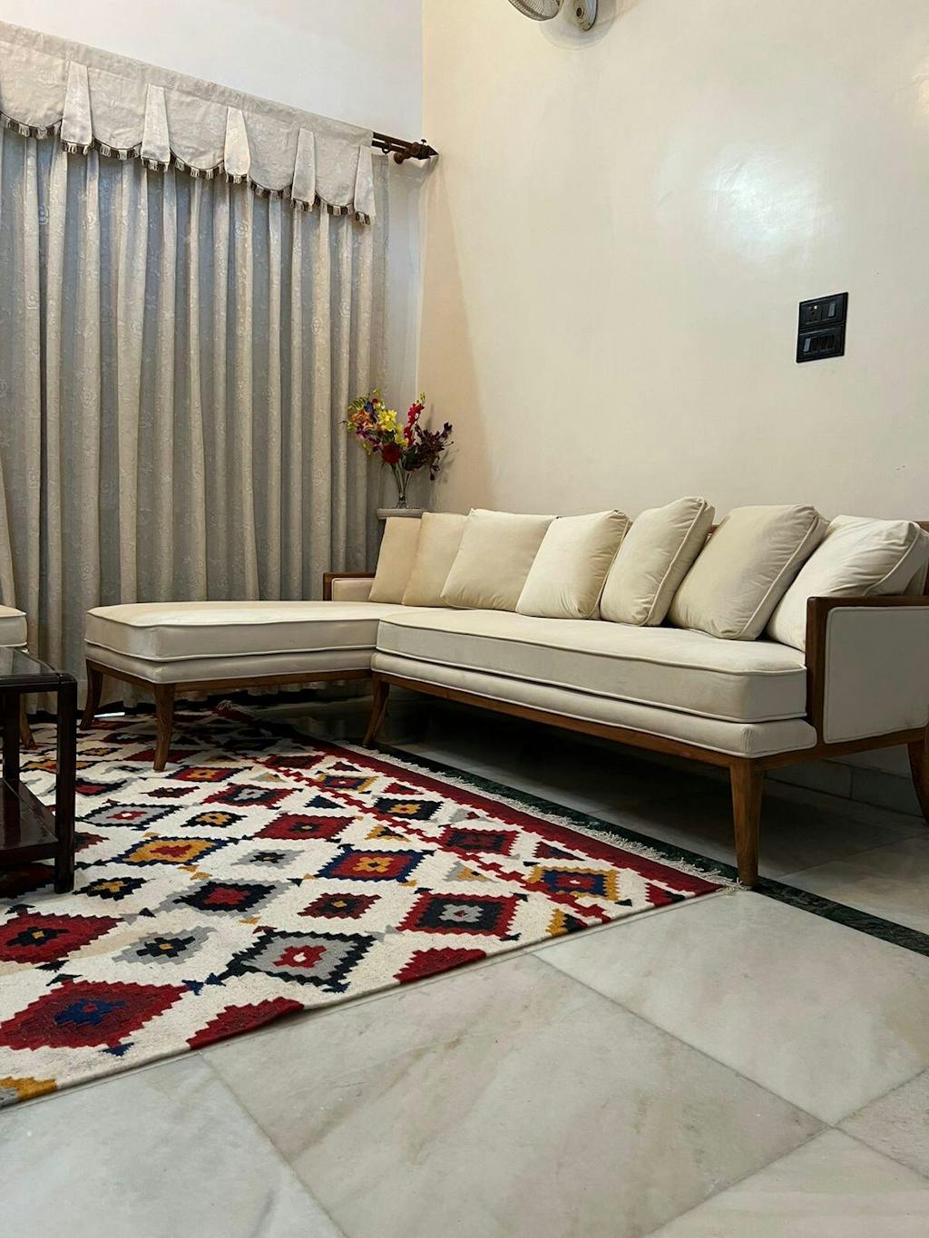 A hand crafted teak frame crafted from premium wood, finished in natural lacquered, upholstered in fine luxe Velvet. Cozy and very comfortable to entertain guest or just stretch your feet and watch a movie with your family.